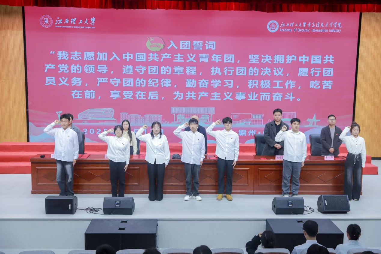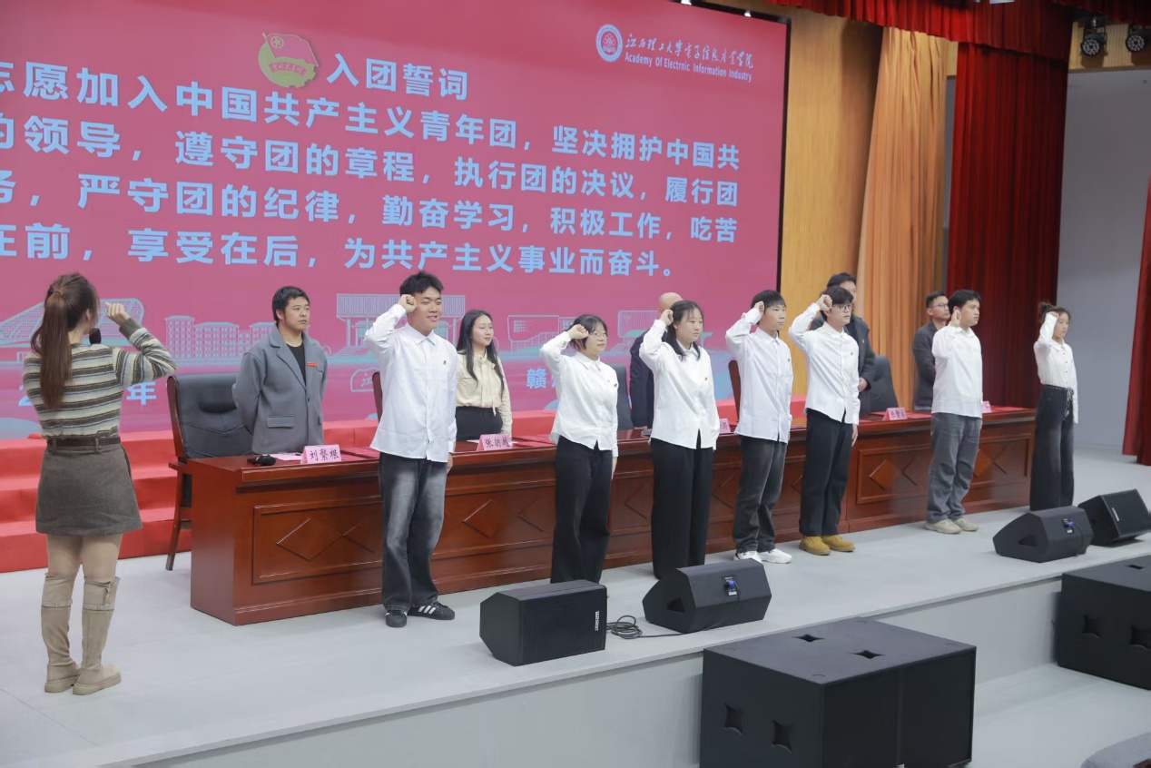 在新团员入团仪式上,团委老师率先宣读新团员名单,学院教师紧接着为新团员佩戴团徽、颁发团员证。新团员们在新任团委学生副书记杨芯茹的带领下庄严宣誓,铿锵誓言回荡会场,彰显着青年学子向团组织靠拢的坚定决心与逐梦前行的昂扬姿态。新团员代表胡雅静发言,表明入团是新起点,从坚定理想信念、锤炼过硬本领、涵养高尚品德、勇于担当奋斗四方面作承诺,并表示将以昂扬姿态践行“请党放心,强国有我”的青春誓言。伴着新团员们的铮铮誓言,入团仪式画上句号。