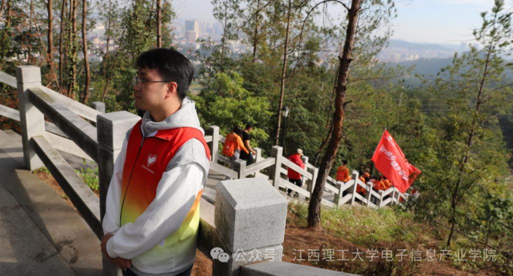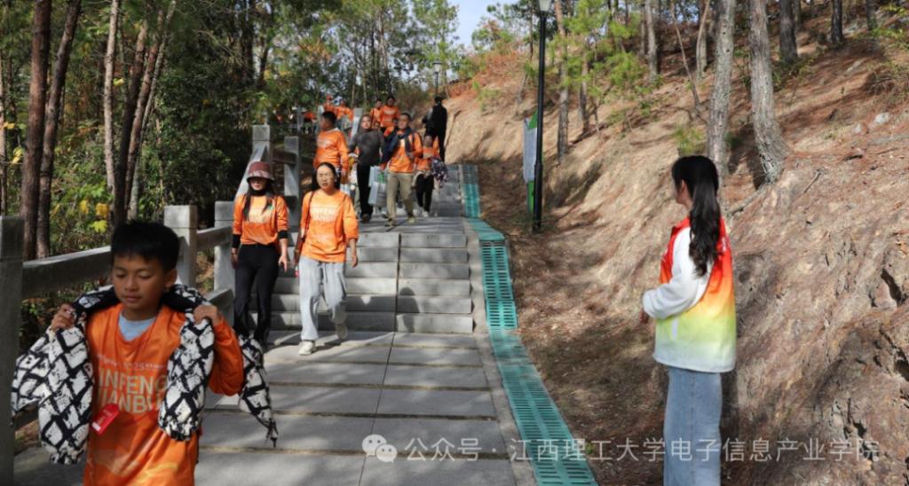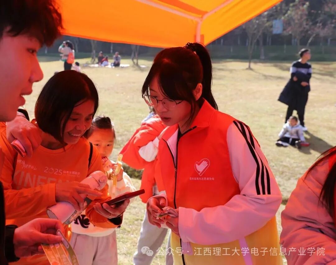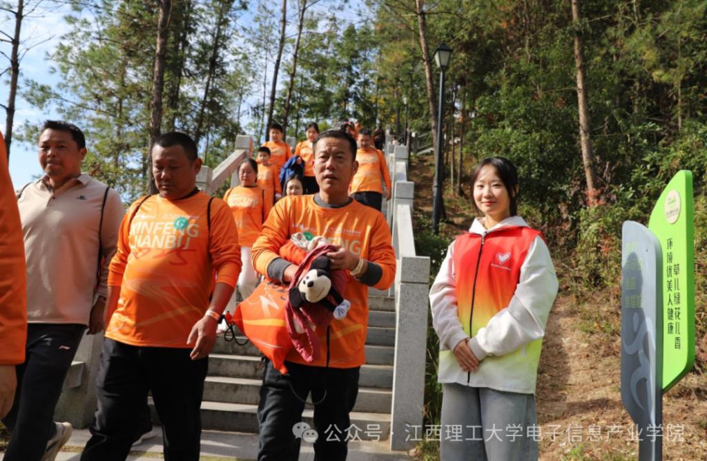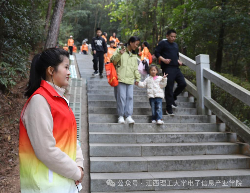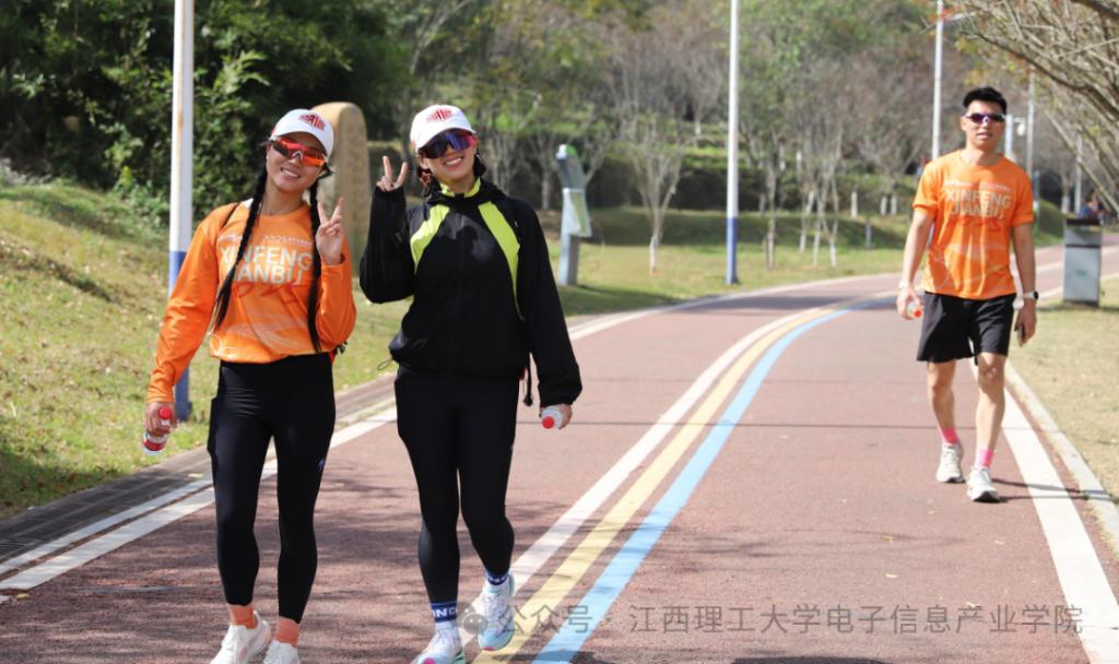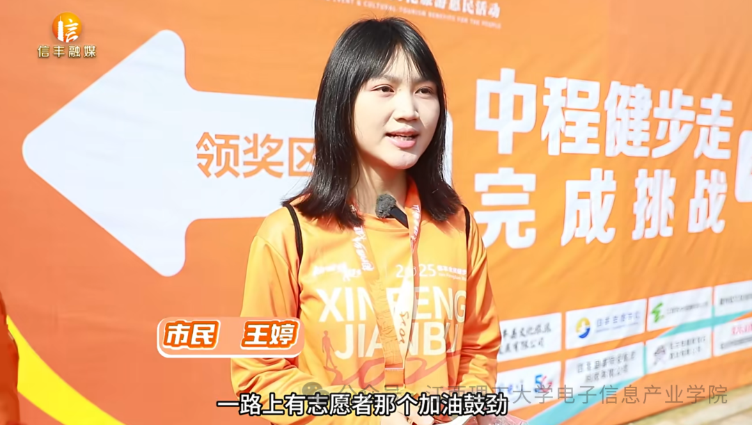 23电科2班韩潇洋说:“当朝阳洒满信丰的大地,那股涌动的热情便汇聚成了橙乡最美的风景。我的岗位在东楼梯,虽然只是一个小小区域,却是连通安全与畅通的关键。我站在那里,提醒每一位经过的健步者“小心脚下,注意安全,切勿拥挤”。能以这种贴心的方式,让每一位参与者都在安全、愉快的氛围中圆满完成健步,这份经历充满荣耀与感动。”