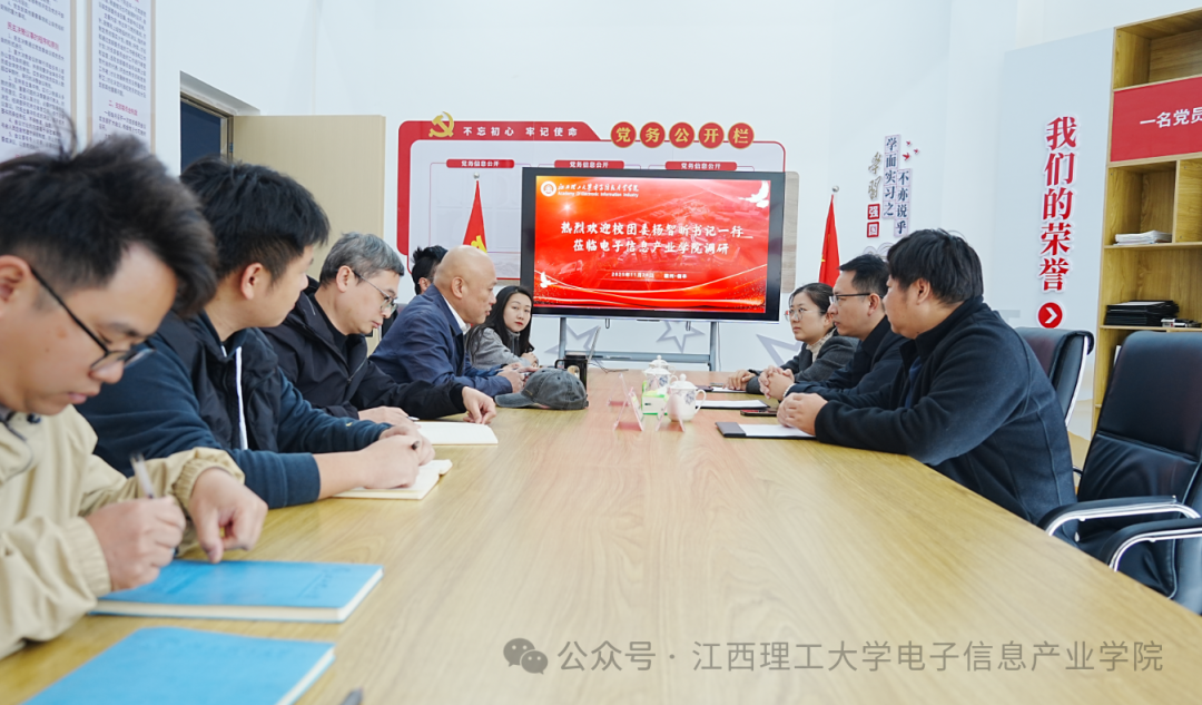 为深入了解基层团学工作动态,加强校院的沟通协作,推动共青团工作高质量发展,11月28日上午,江西理工大学校团委班子成员在电子信息产业学院交流调研并召开座谈会。校团委副书记(主持工作)杨智昕,校团委副书记黄芳,矿业工程学院团委书记刘浩,电子信息产业学院党委书记、院长黄学雨等陪同调研,部分教师参加座谈会。