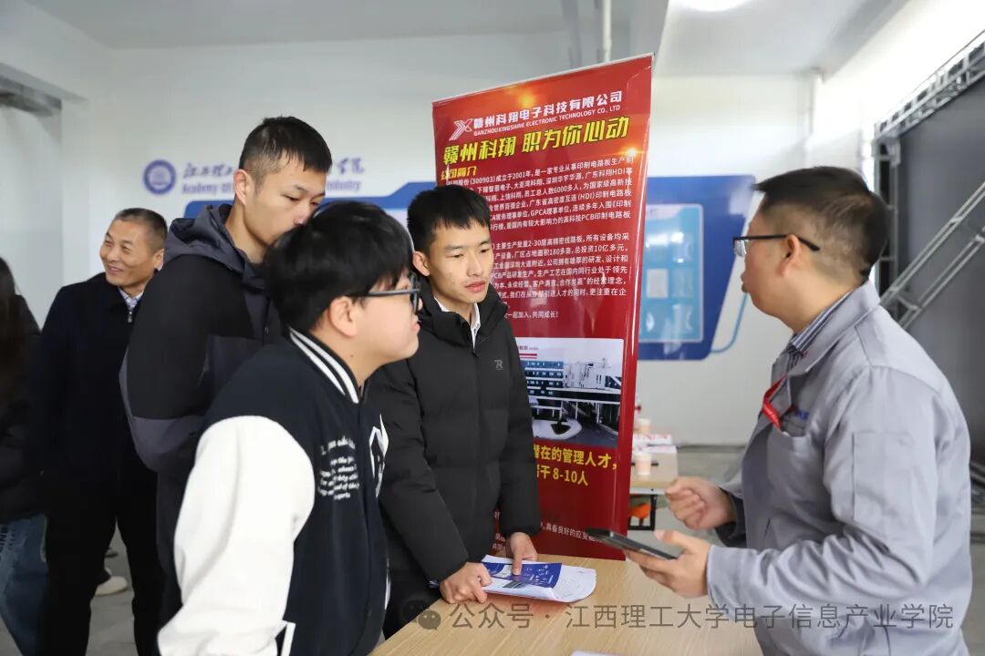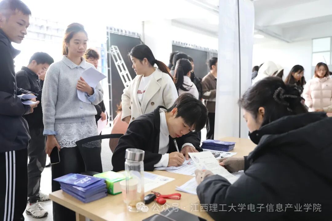 金风卷叶战旗扬,月下磨剑待曙光。为进一步深化产教融合,给毕业生搭建起优质的求职交流平台,畅通求职招聘渠道,11月19日,由江西理工大学电子信息产业学院主办,信丰县委组织部、县高新区管委会、县工信局和县人社局承办的“留在信丰 ‘橙’就未来”2026届毕业生秋季信丰专场校园招聘会成功举办。