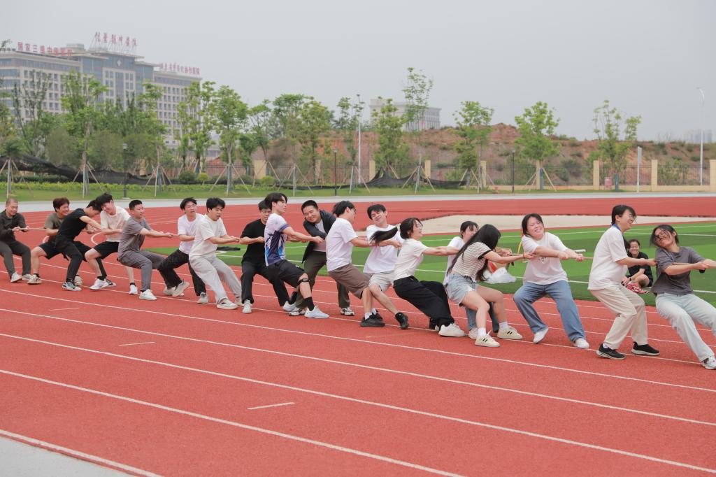本次运动会以“趣味竞技、凝心聚力”为宗旨,设置同炉共进、钨金战鼓、金石投趣、矿脉齐跃、稀土争锋五大特色集体项目。比赛现场气氛热烈、趣味盎然,各班级参赛队员默契配合、奋勇争先:同炉共进中,大家脚踝相绑、步调一致;钨金战鼓上,众人齐心控鼓颠球,节奏井然;金石投趣里,一投一接默契十足;矿脉齐跃时,长绳翻飞、身姿轻盈;稀土争锋中,力量与意志激烈碰撞。呐喊声、加油声、欢笑声此起彼伏,赛场处处洋溢着青春活力。